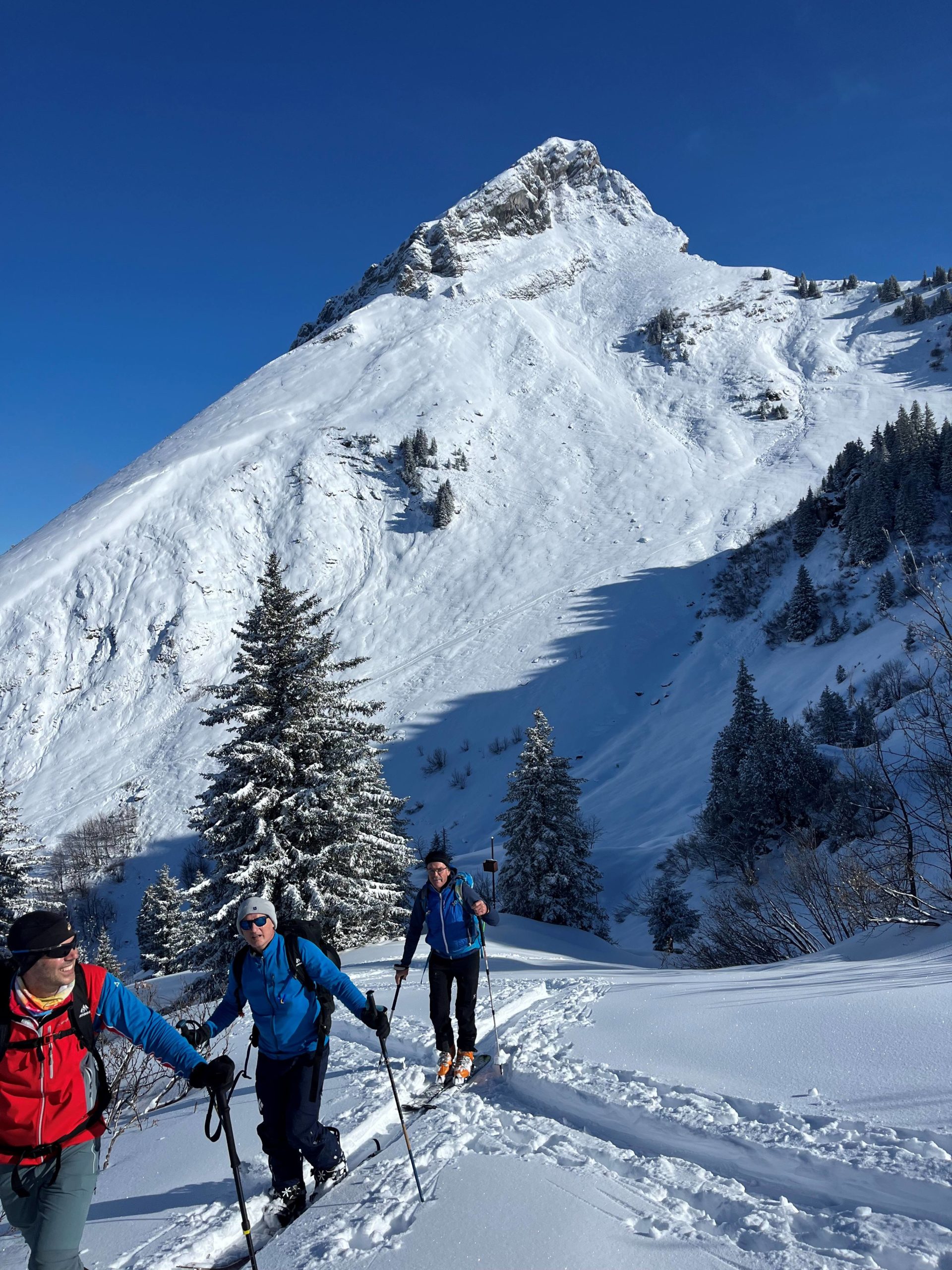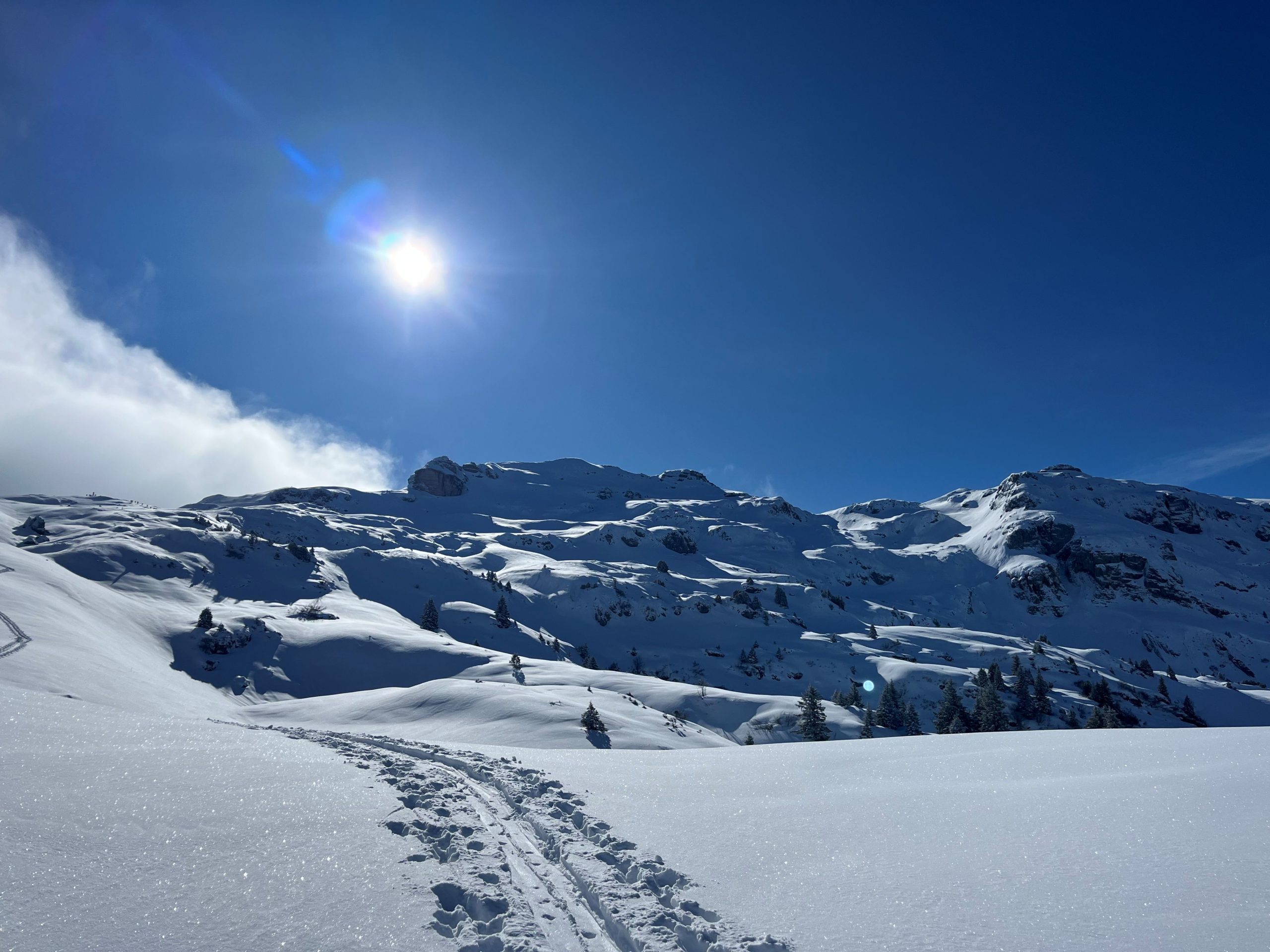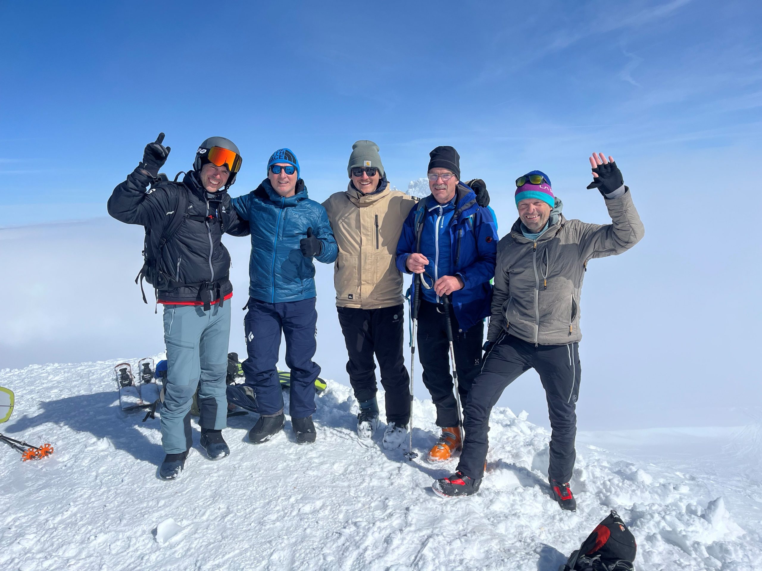 Am Sonntag hat Samuel Gasser – bekannt als Timing Chef – seine „erste“ Clubtour als Tourenleiter durchgeführt. Wieso in die Ferne schweifen, wenn das Gute liegt so nah? Das dachte jedenfalls auch Sämi und lag mit dem Tourenziel Schilt goldrichtig. Der Schilt, das ist ein unscheinbarer, aber als Tourenziel sehr lohnender Gipfel, den man vom Tal aber auch von Amden aus gut sieht. Die Kombination von frischem Neuschnee und Sonne pur ergab hervorragende Bedingungen. Dank der Spurarbeit vom befreundeten SC Riederen (Danke Markus!) konnte unsere Skiclübler gemütlich zum Gipfel steigen. Bei der Abfahrt waren unsere Cracks dann nicht verlegen, selber tolle Spuren zu ziehen und ordentlich zu „ackern“.