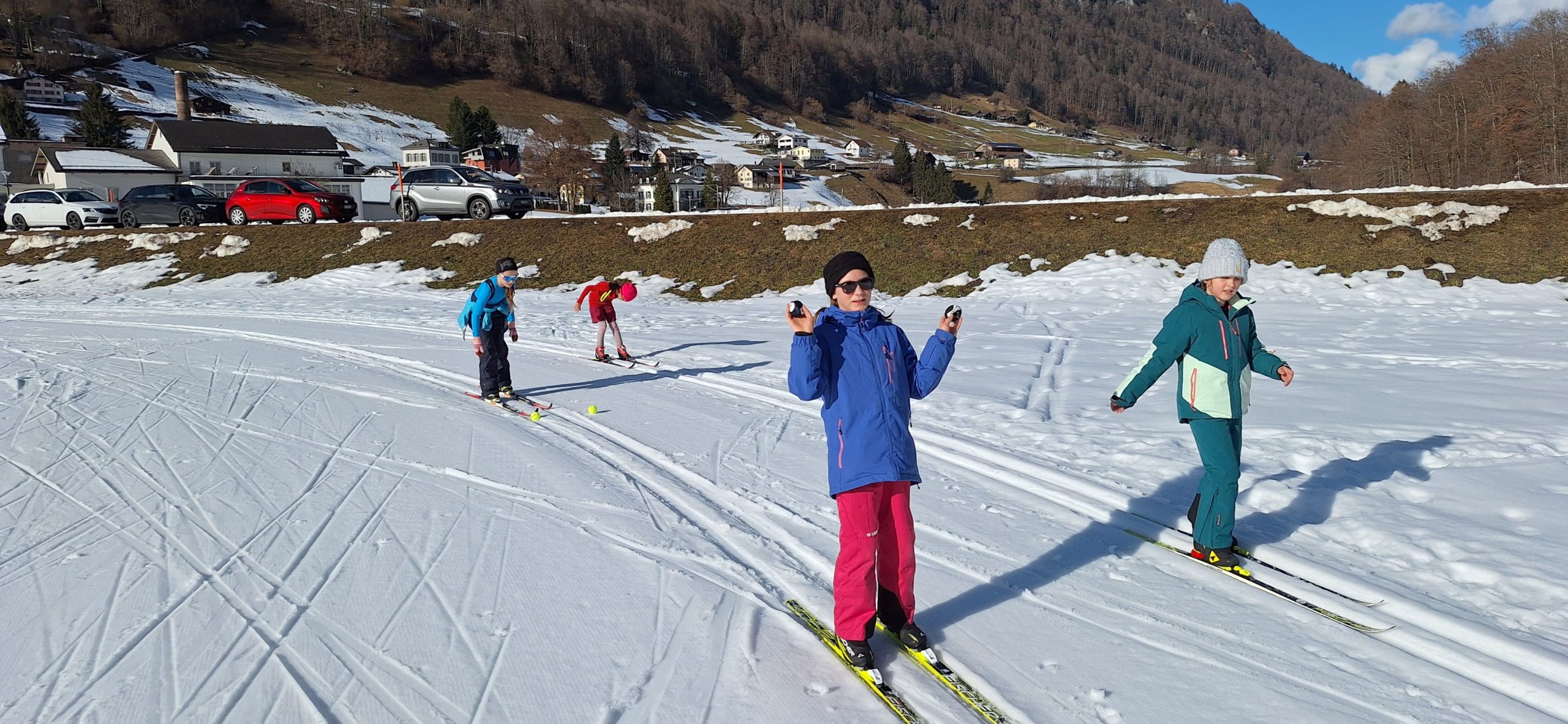 Mit der „Fridoling“-Zeitung fanden die ersten Übungen auf der Loipe Töditritt statt und es wurde bei der Nachmittagswärme fleissig geschwitzt.